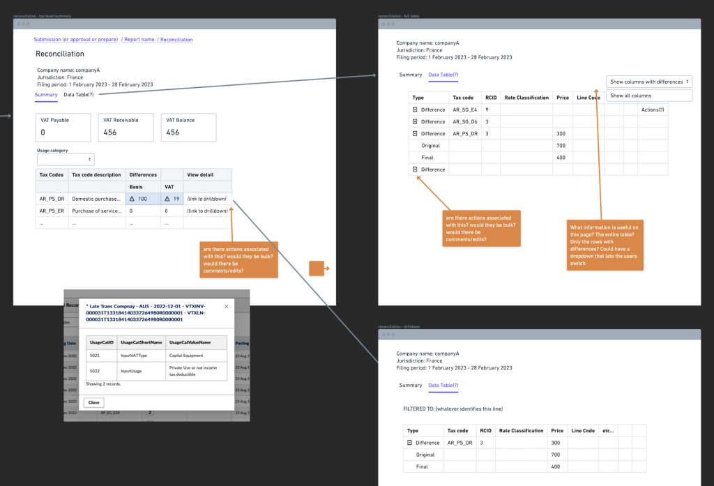 • User Flows & Journeys: Mapped out user flows to define key interactions and decision points. Developed user journeys to align with real-world reconciliation processes. Iterated on low-fidelity wireframes, ensuring alignment across teams before progressing to high fidelity.