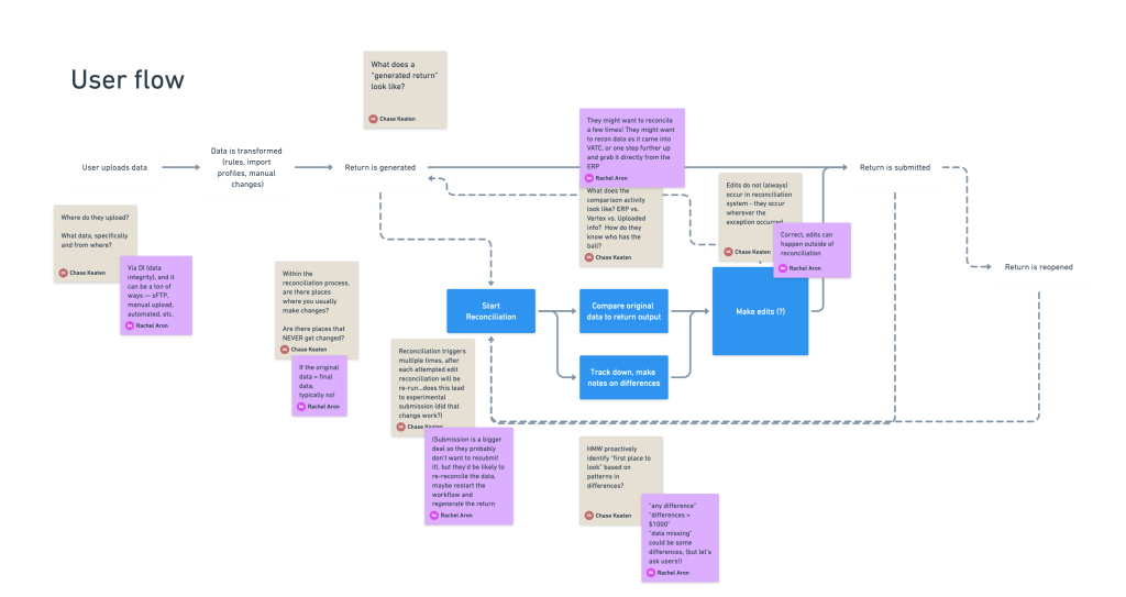To ensure the feature aligned with user needs, I conducted extensive research before initiating the design sprint. I worked with the UX Research Team to gather insights from potential users and conducted user interviews to understand their reconciliation processes and pain points.